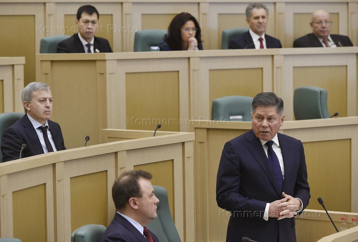 Председатель Верховного Суда России Вячеслав Лебедев (в центре) во время пленарного Совета Федерации.