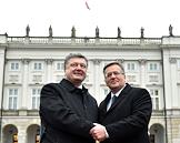 Президент Украины Петр Порошенко во время рабочей поездки в Польшу. Президент Украины Петр Порошенко (слева) и президент Польши Бронислав Коморовский (справа) во время встречи.