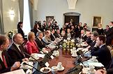 Президент Украины Петр Порошенко во время рабочей поездки в Польшу. Президент Украины Петр Порошенко (второй справа) во время встречи в расширенном формате глав двух государств по вопросам двустороннего сотрудничества.