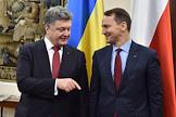 Президент Украины Петр Порошенко во время рабочей поездки в Польшу. Президент Украины Петр Порошенко (слева) во время официальной церемонии встречи.