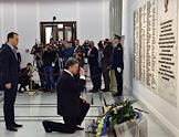 Президент Украины Петр Порошенко во время рабочей поездки в Польшу. Министр иностранных дел Польши Радослав Сикорский (слева) и президент Украины Петр Порошенко (справа) у мемориальной доски.