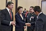 Рабочая поездка президента Украины Петра Порошенко в Польшу. Слева направо: президент Украины Петр Порошенко, премьер-министр Польши Ева Копач и министр обороны Украины Степан Полторак перед совместным заседанием Сейма и Сената Республики Польша.