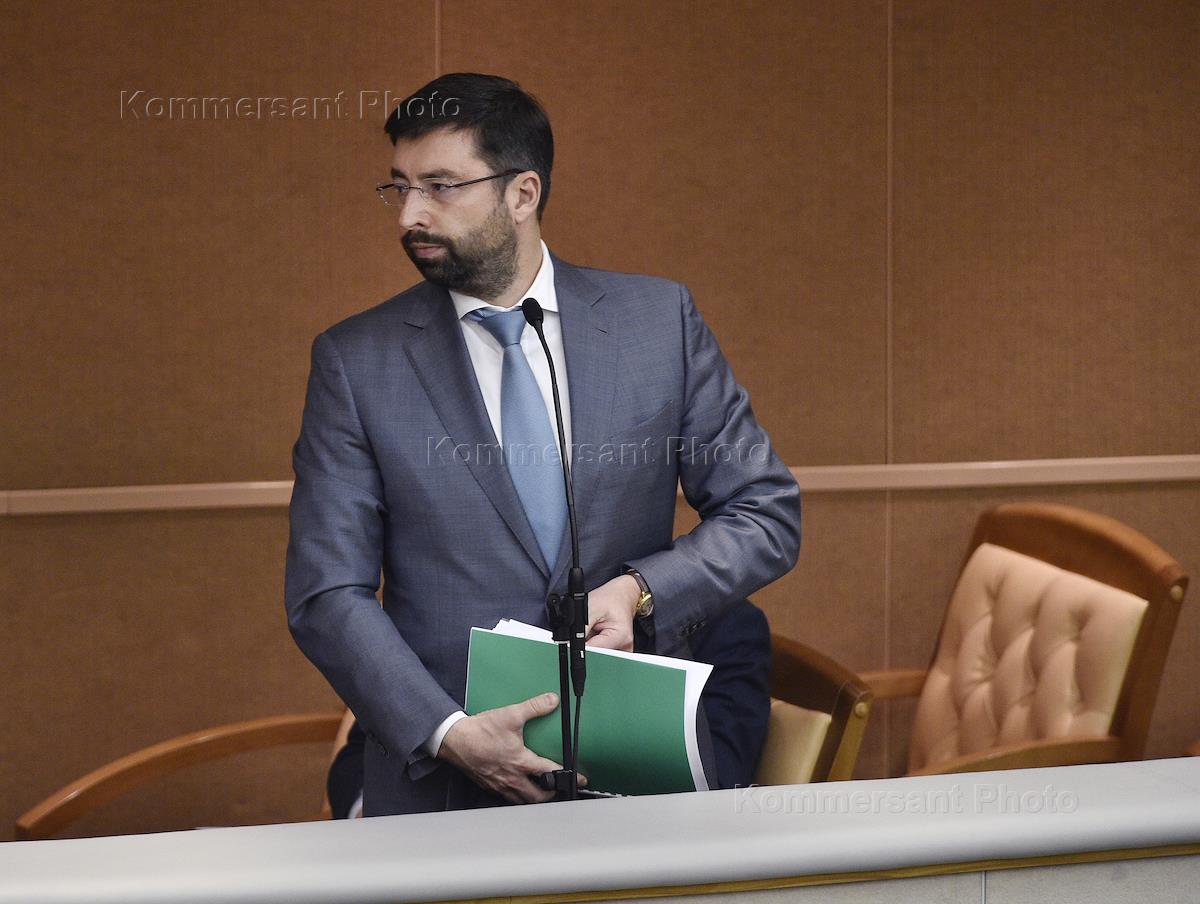 Председатель комитета Государственной думы России по бюджету и налогам Андрей Макаров во время пленарного заседания Госдумы России.