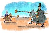 Шаржи и Карикатуры. Рубль падающий вниз по бочкам.