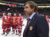 Кубок Первого канала по хоккею 2014. Матч между сборными командами России и Чехии. Главный тренер мужской сборной России по хоккею Олег Знарок (слева) во время матча.