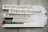 Церемония открытия мемориальной доски в честь журналиста и фотокорреспондента МИА "Россия Сегодня" Андрея Стенина, погибшего на Украине при исполнении профессионального долга и награжденного посмертно орденом Мужества, на здании МИА "Россия сегодня".