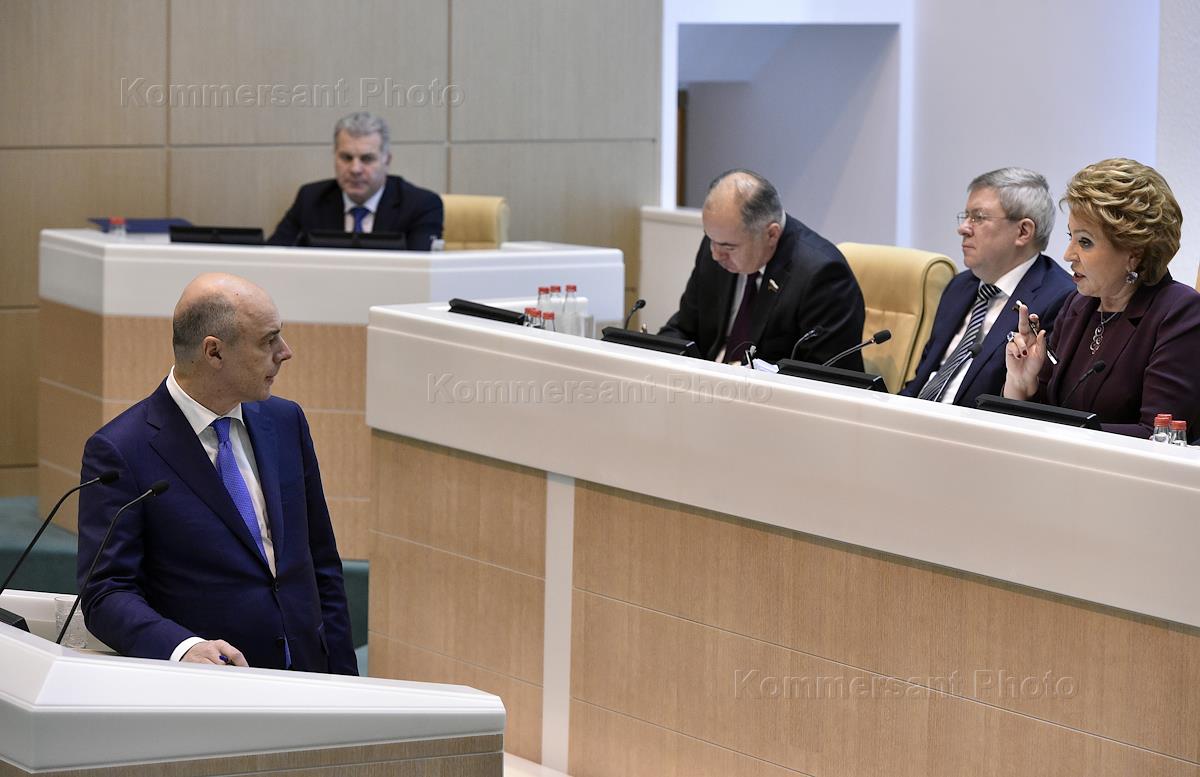 Министр финансов России Антон Силуанов на пленарном заседании Совета Федерации России.