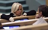 Представитель в Совете Федерации России от исполнительного органа государственной власти Республики Крым Ольга Ковитиди (справа) на пленарном заседании Совета федерации.