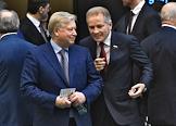 Представитель в Совете Федерации России от исполнительного органа государственной власти Кировской области Вячеслав Тимченко (справа) на пленарном заседании Совета Федерации.