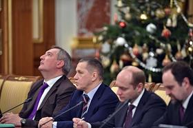 Слева направо: заместитель председателя правительства России Дмитрий Рогозин, заместитель председателя правительства России - полномочный представитель президента России в Дальневосточном федеральном округе Юрий Трутнев, министр по развитию Дальнего Востока Александр Галушка и министр природных ресурсов и экологии России Сергей Донской на заседании правительства России.
