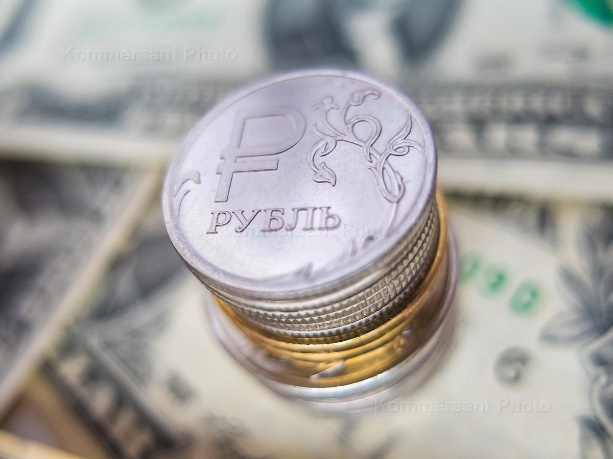 The scenic photography. The rouleau of one-rouble coins and one-dollar bill.