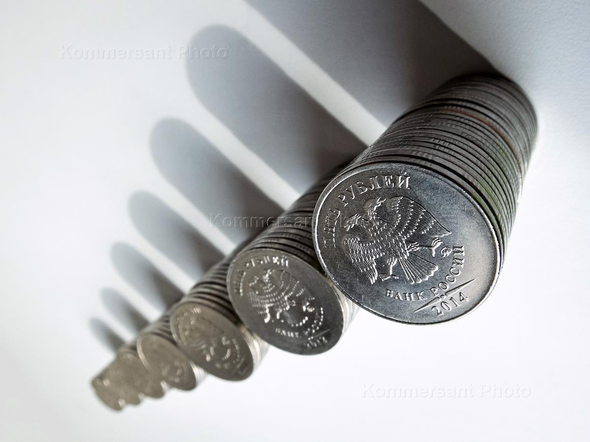 Жанровая фотография. Стопки рублевых монет разного достоинства.
