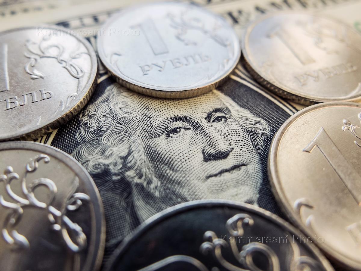 The scenic photography. The rouleau of one-rouble coins and one-dollar bill.