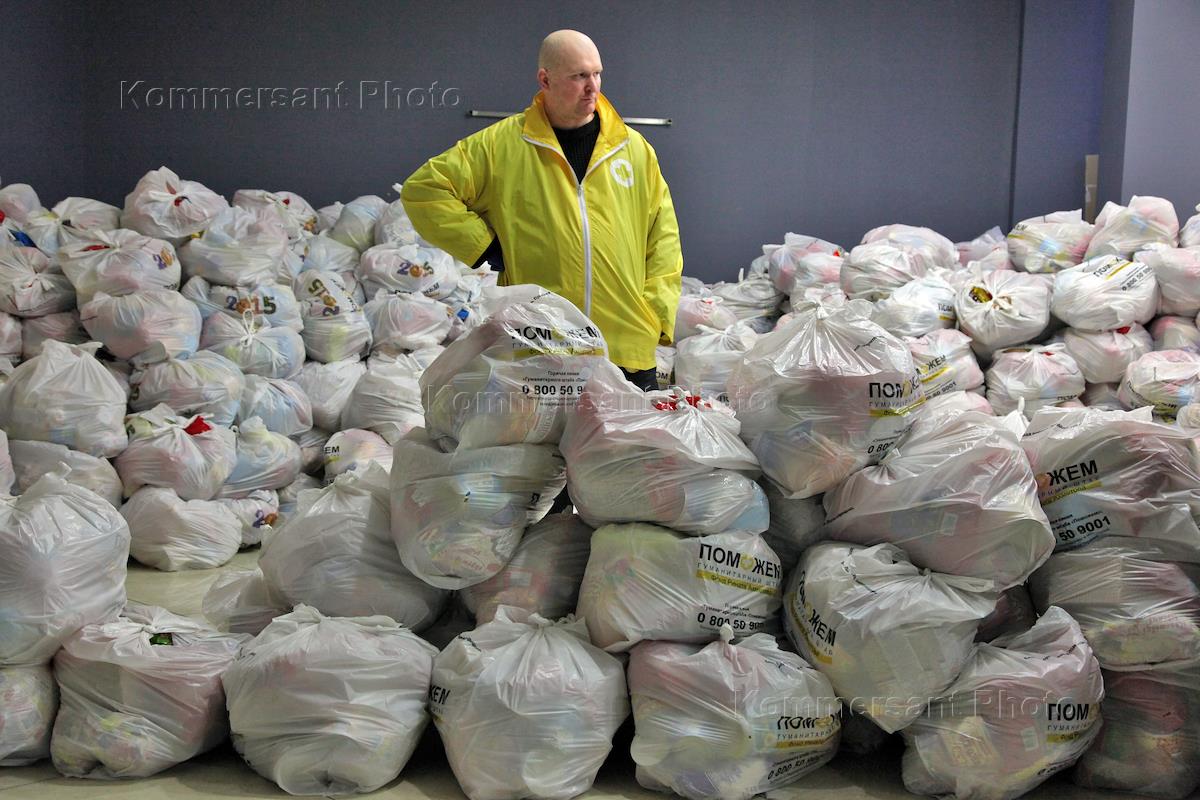 Выдача гуманитарной помощи жителям Донецка фондом Рината Ахметова.