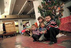 Дети в бомбоубежище в Трудовском районе Донецка готовятся встречать Новый год.