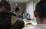 Бойцы ополчения встречают Новый год в своем расположении в Донецке, слушают новогоднее поздравление президента России Владимира Путина.