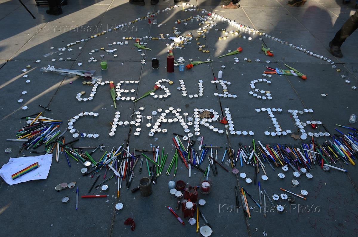 "Марш единства" в память о жертвах нападения на редакцию журнала Charlie Hebdo прошел на площади Республики в Париже.