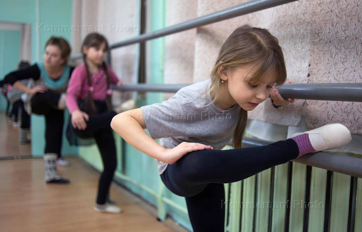 Дети во время занятий хореографией в городском Доме культуры городе Шарья.