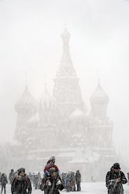 Жанровая фотография. Снегопад в Москве. Люди на Красной площади.