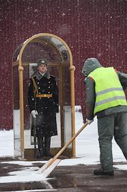 Жанровая фотография. Снегопад в Москве. Сотрудники полиции на дежурстве.