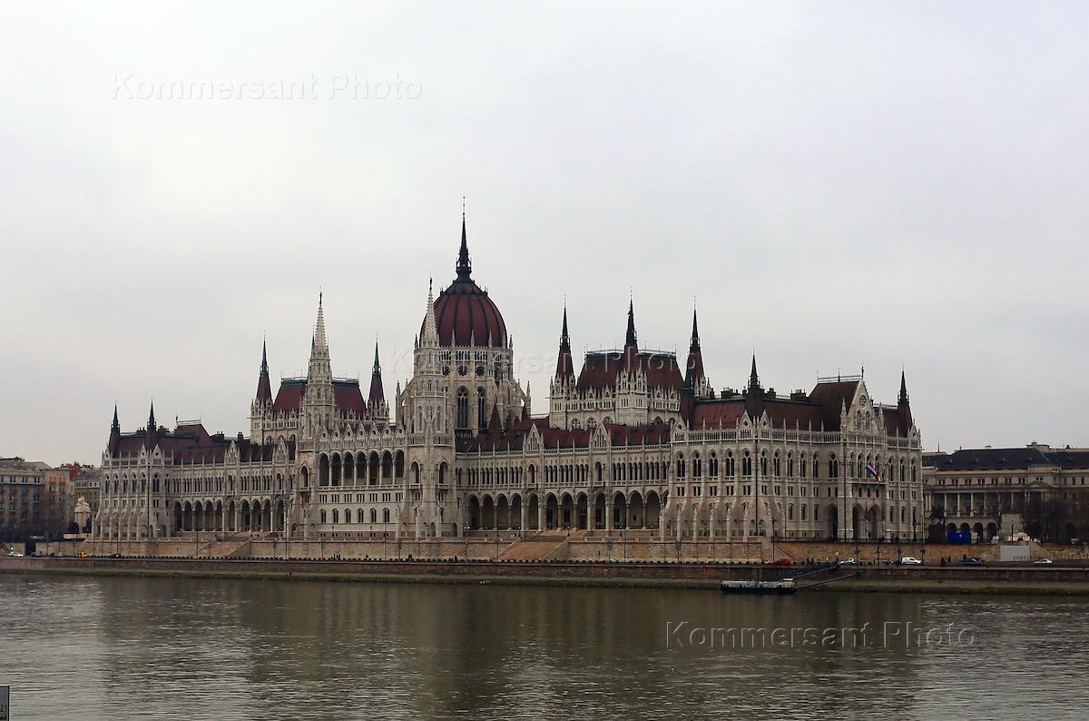 Виды города Будапешт. Здание венгерского Парламента на берегу Дуная.