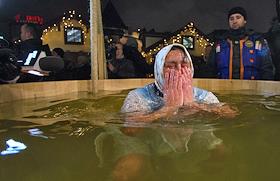 Крещенские купания во время праздника Крещения Господня на площади Революции.