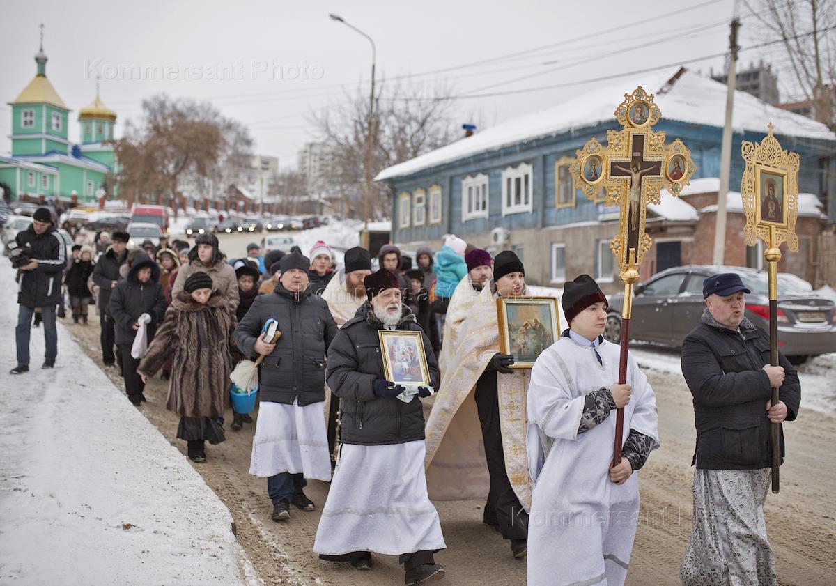 Крещенские купания во время праздника Крещения Господня. Крестный ход.