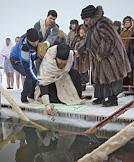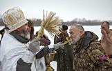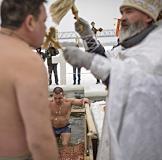 Крещенские купания во время праздника Крещения Господня. Освящение воды в проруби.