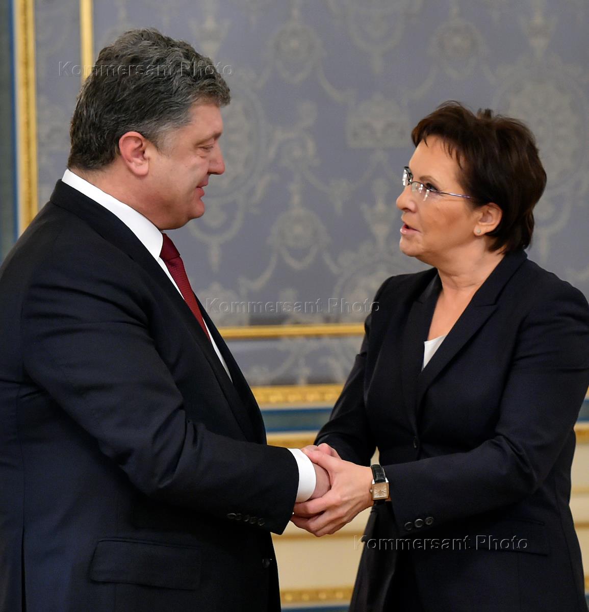 Президент Украины Петр Порошенко (слева) и премьер-министр Республики Польша Ева Копач (справа) во время официальной встречи.