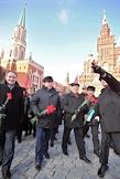Участники церемонии возложения цветов к Мавзолею В.И.Ленина в день 91-й годовщины со дня кончины вождя Октябрьской революции.
