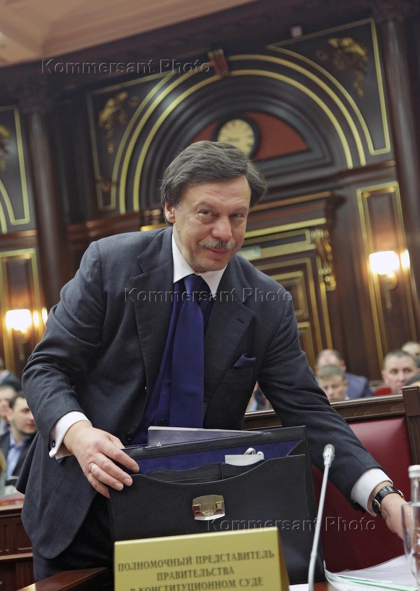 Полномочный представитель правительства России в высших судебных инстанциях Михаил Барщевский на заседании Конституционного суда России, на котором было рассмотрено дело о проверке конституционности отдельных положений Федерального закона "О Прокуратуре Российской Федерации".