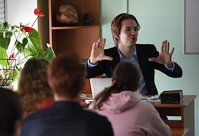 Создатель компании Visual Science Иван Константинов в гимназии №45.