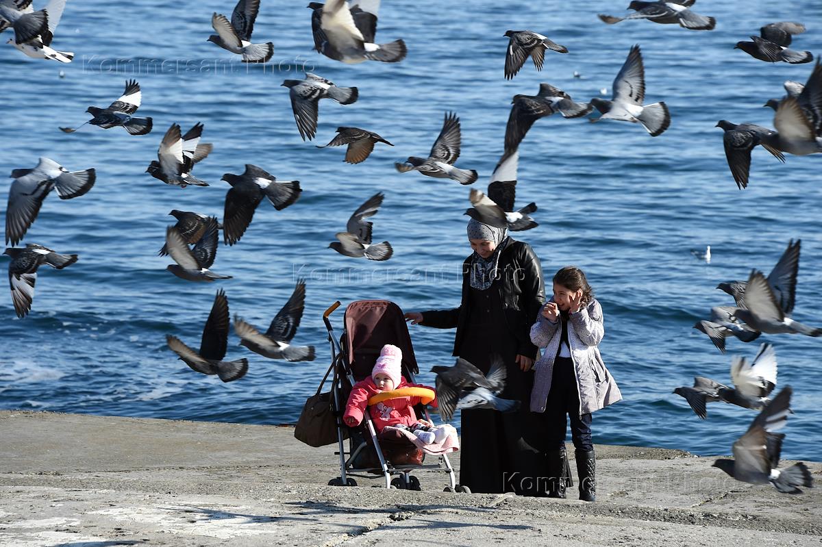 Жанровая фотография. Зимний отдых на пляже Алушты.