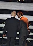 Режиссер Федор Бондарчук (слева) и режиссер Резо Гигинеишвили (справа) на XIII торжественной церемонии вручения Национальной премии в области кинематографии "Золотой орел".