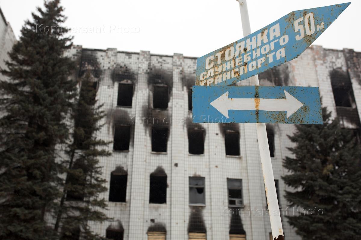 Здание пострадавшее от обстрела в результате проведения АТО в городе Шахтерске.