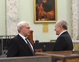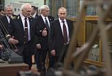Рабочий визит президента России в Санкт-Петербург. Ректор Национального минерально-сырьевого университета "Горный" Владимир Литвиненко (слева) во время посещения университета президентом России Владимиром Путиным (справа).