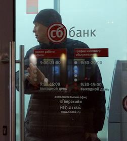 Мужчина у входа в отделение "Судостроительного Банка" (СБ-банк) на Тверской улице.
