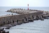 Жанровая фотография. Рыбаки ловят рыбу на побережье Балтийского пролива в городе Балтийск.