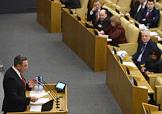 Министр России по делам Крыма Олег Савельев (слева) во время "Правительственного часа" на пленарном заседании Государственной думы России.