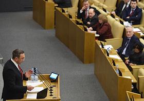 Министр России по делам Крыма Олег Савельев во время "Правительственного часа" на пленарном заседании Государственной думы России.