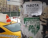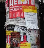 Жанровая фотография. Объявления о поиске работы, получения кредита на столбе.