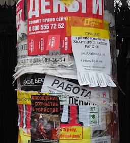 Жанровая фотография. Объявления о поиске работы, продажи квартиры, получения кредита на столбе .