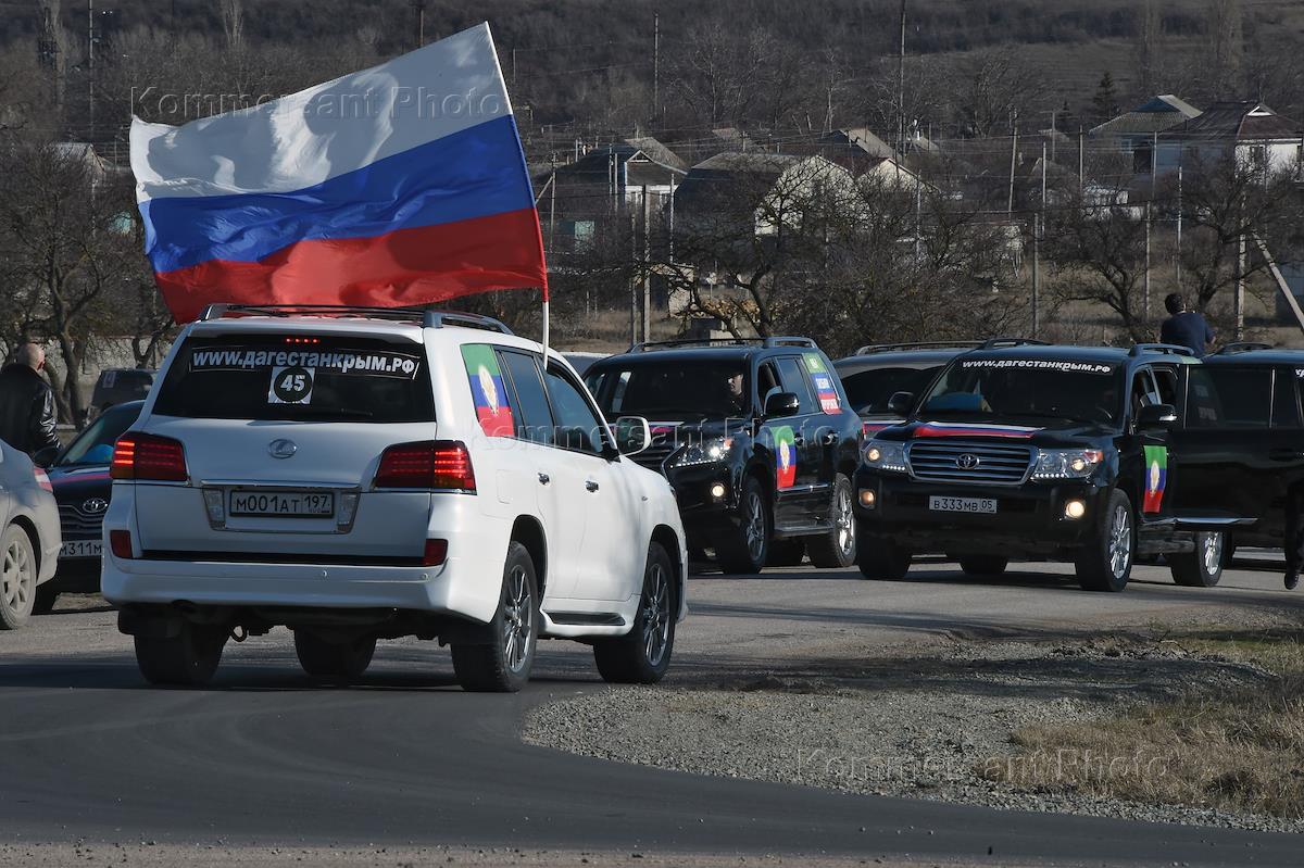 Участники автопробега "От Дагестана до Крыма "С любовью к пророкам" в знак протеста против карикатур на пророка Мухаммеда в журнале Charlie Hebdo.