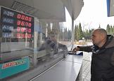 Жанровая фотография. Эмблема Российского национального коммерческого банка (РНКБ) и объявление о скидке 40 %.
