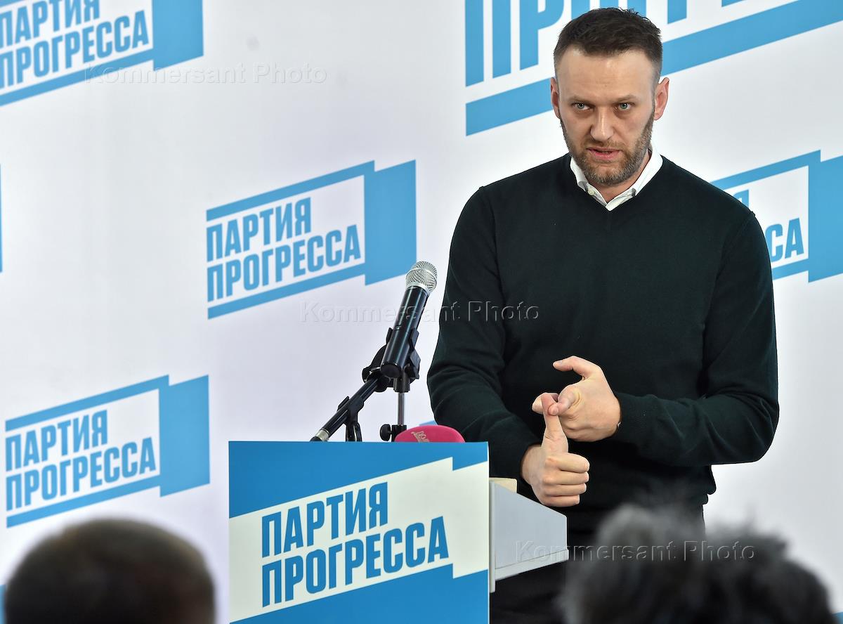 Отчетно-выборный съезд партии "Партия Прогресса" прошел в деловом центре "Омега-плаза". Председатель партии Алексей Навальный на заседании съезда.