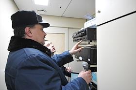 Внутренний интерьер туалетной комнаты вагона первого двухэтажного поезда сообщением Санкт-Петербург - Москва. Поезд во время отправления с Московского вокзала.