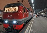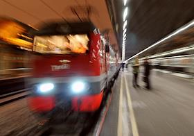Поезд во время отправления первого двухэтажного поезда сообщением Санкт-Петербург - Москва с Московского вокзала.