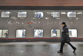 Пассажиры во время отправления первого двухэтажного поезда сообщением Санкт-Петербург - Москва с Московского вокзала.