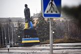 Памятник В.И.Ленину на площади. Ноги окрашены в цвета государственного флага Украины.