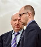 Секретарь Совета национальной безопасности и обороны Украины Александр Турчинов (слева) и премьер-министр Украины Арсений Яценюк (справа) перед началом заседания Национального Совета реформ.